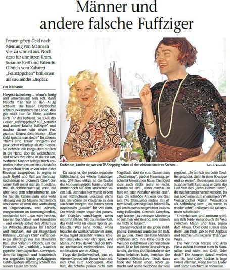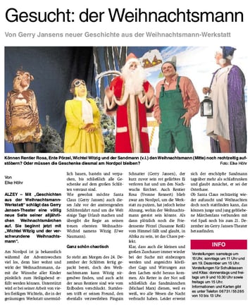 Zwei neue Gesichter konnte er vorstellen: Susanne Reiss aus Erfurt wechselte vom Bankfach in die Schauspielerei und gab nun in der Rolle der Klempnerin Jaqueline Schaf ihr Debüt in Latzhose und Gummistiefeln. „Das Sächsische hat sie sich in den letzten drei Wochen draufgeschafft“, meinte Jansen. ...